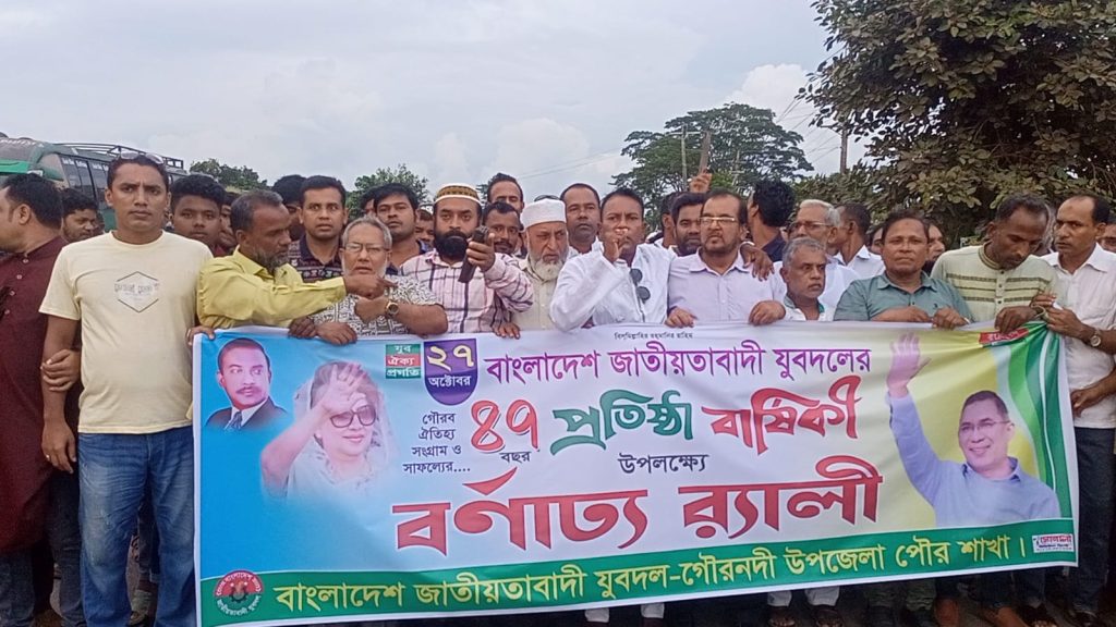 যুবদলের প্রতিষ্ঠাবার্ষিকী উপলক্ষে গৌরনদীতে র্যালী ও আলোচনা সভা