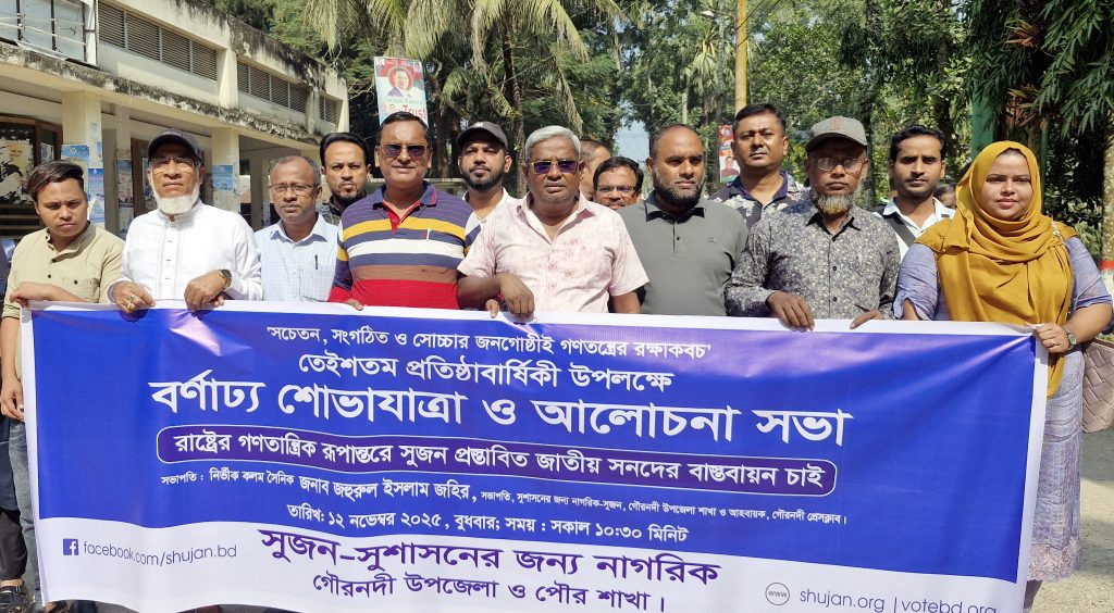 গৌরনদীতে সুজনের প্রতিষ্ঠাবার্ষিকী উপলক্ষে বর্ণাঢ্য র‌্যালি ও আলোচনা সভা