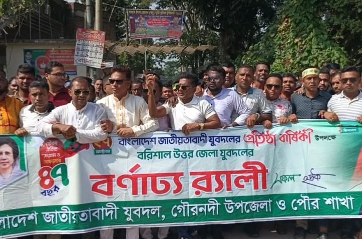 বাংলাদেশ জাতীয়তাবাদী যুবদলের ৪৭তম প্রতিষ্ঠাবার্ষিকী উপলক্ষে বরিশালের গৌরনদীতে র্যালি ও আলোচনা সভা অনুষ্ঠিত হয়েছে।...
